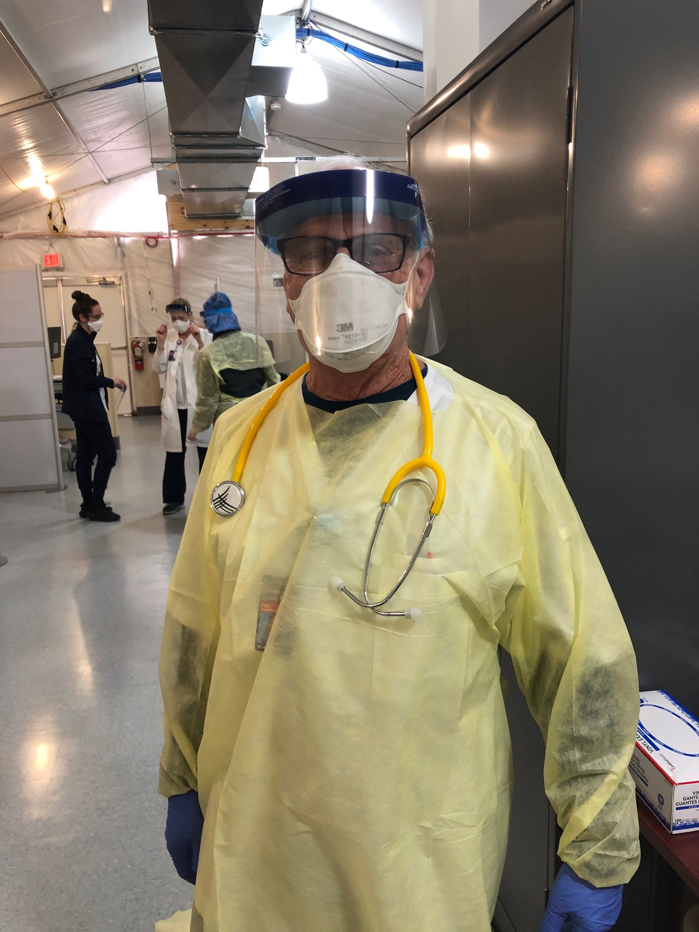 | Bill Conboy - North Babylon Emergency Room RN "This is a photo of my father, Bill Conboy, who is an emergency room RN from North Babylon. He will be 65 years old this month, and continues to work on the front lines helping so many during these trying times. As much as we wish he could stay home, he can’t because he’s needed. I’m so thankful to him and to all the other heroes- his fellow nurses, first responders and every essential worker out there."