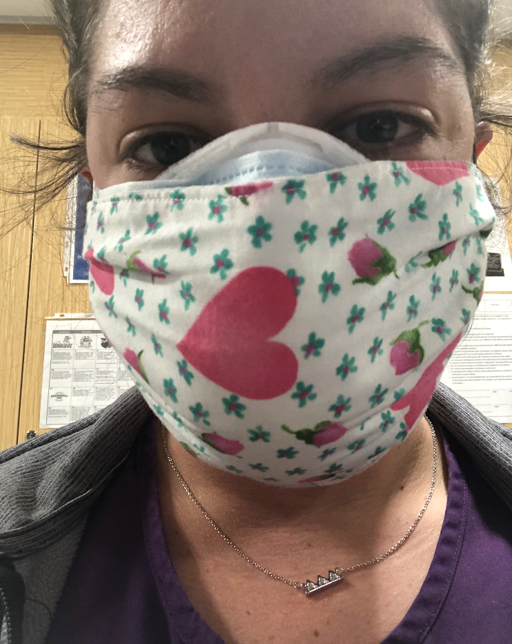 | Patty Cordes - Lindenhurst Registered Nurse at Mount Sinai South Nassau Hospital "I was called back to the bedside to assist with the influx of COVID-19 patients and lack of staff due to the same. I miss being able to hug my kids and spend time with my family due to social distancing. Please help us help you and stay home!"