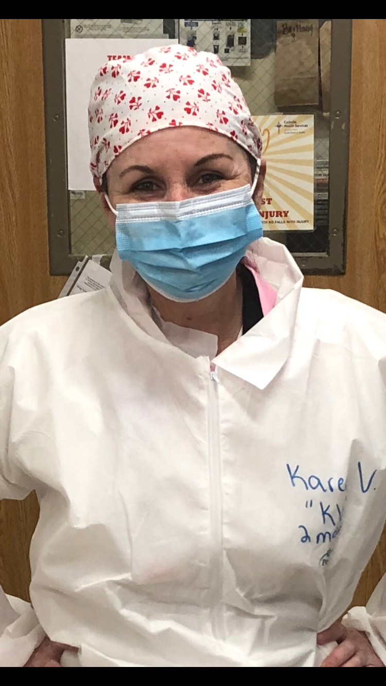 Vicki Oliva - North Babylon Nursing Assistant at Good Samaritan Hospital "My unit was the first to be converted to a COVID unit. We have watched many people die and have cheered on the others to beat this terrible virus. The hospital as a whole has done an outstanding job helping those heal."